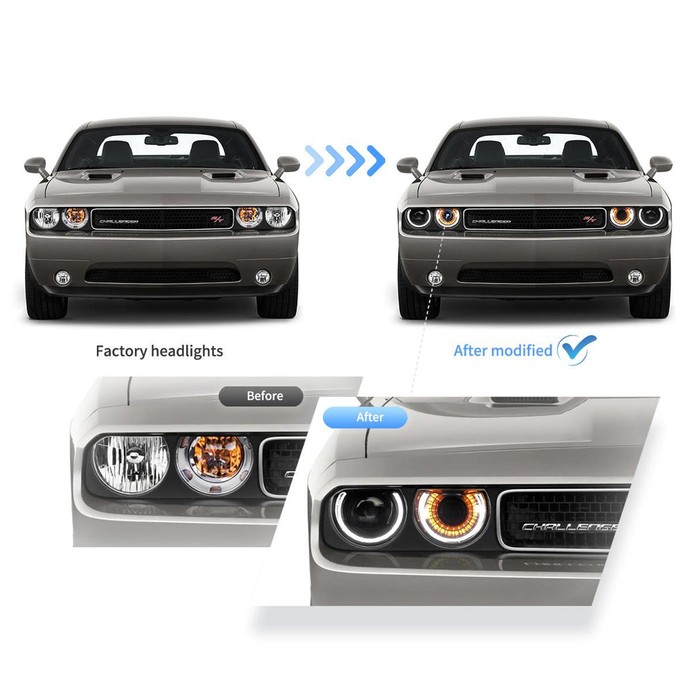 - Fit For 08-14 Dodge Challenger 3th Gen Pre-Facelift Plug and Play Both Stock with Halogen Headlight And Stock With HID/Xenon Headlight