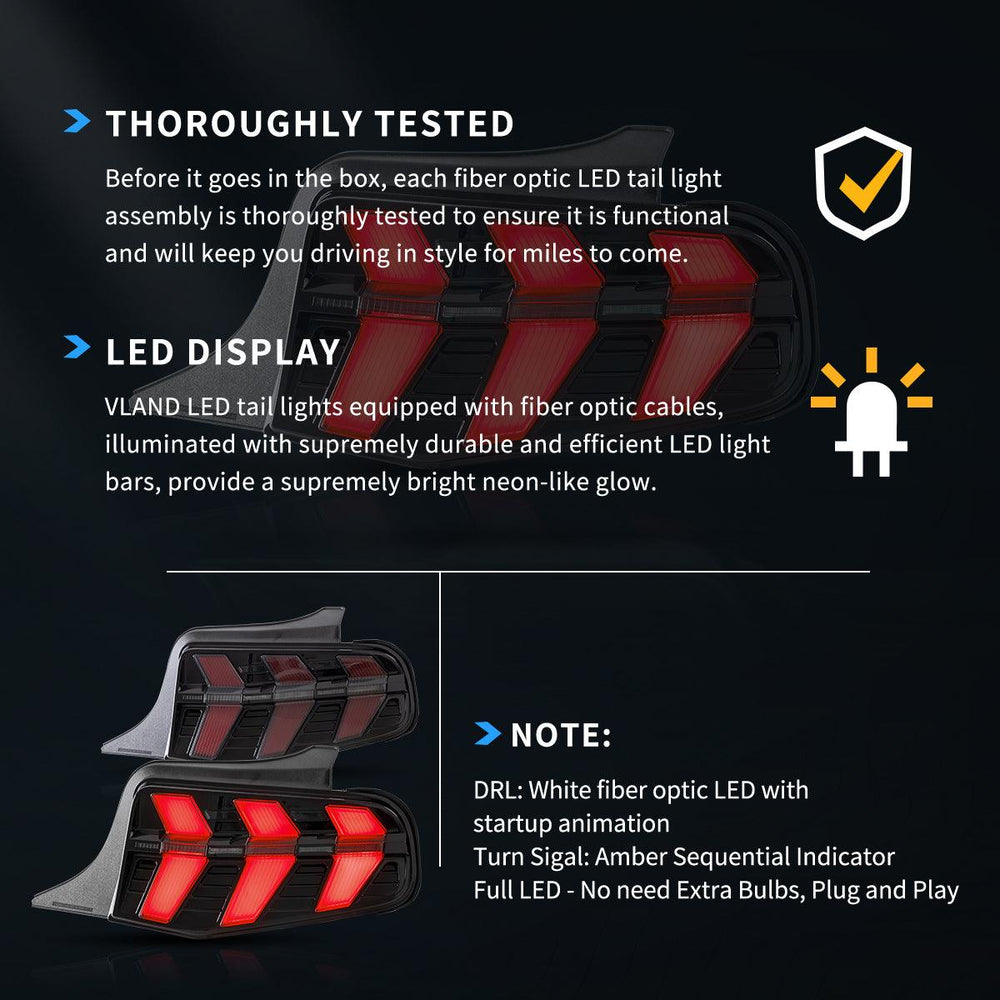 LED Tail Lights Assembly With 5 Modes Turn Signal 2 Modes Brake Lighting Smoked For 2010-2012 Ford Mustang 5th Gen (S-197 II) Pre-Facelift