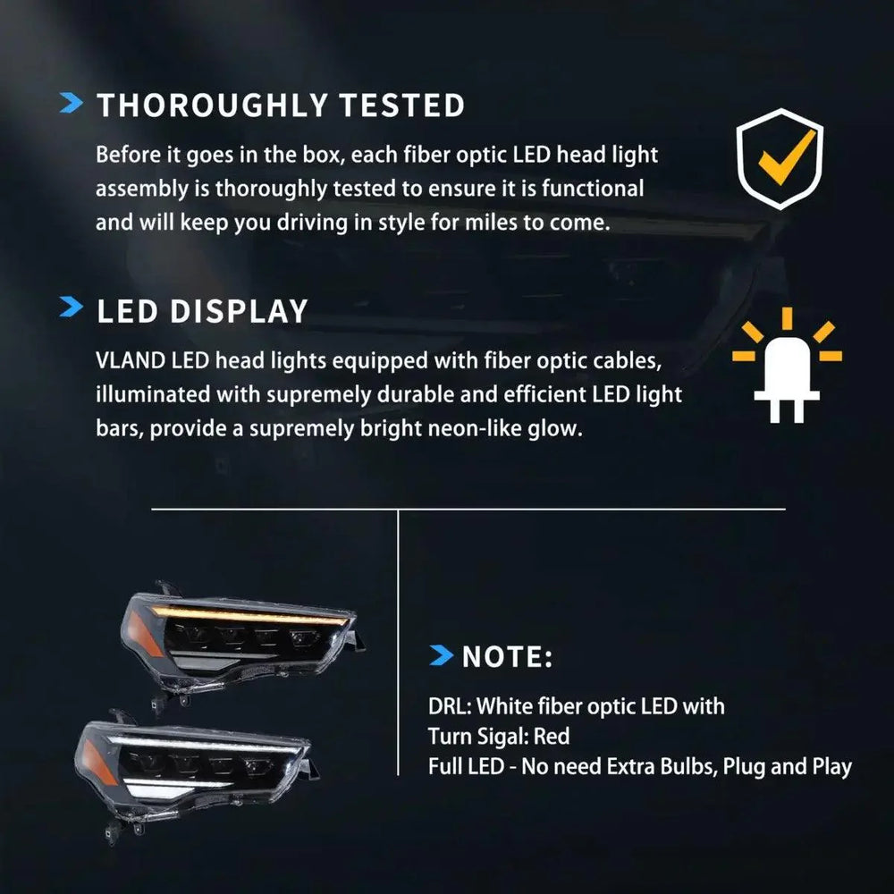LED Headlight Assembly 4Pcs Projector Upgrade For 2014-2024 Toyota 4Runner