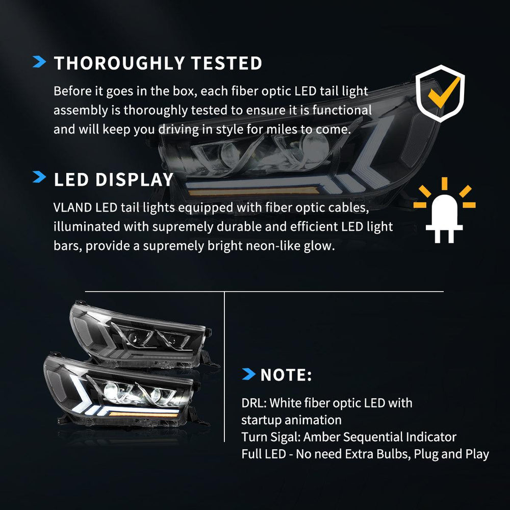 LED Headlight Assembly Dual Beam Projector Black For 2015-2020 Toyota Hilux SR5 8th Gens (GUN125, GUN126R) Pre-Facelift