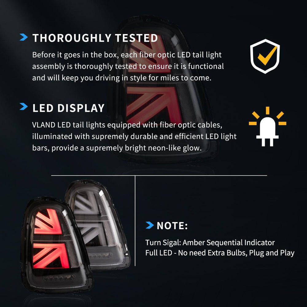 LED Tail Lights Assembly With Amber Sequential Turn Signal For 2007-2015 Mini R Series 2th Gen (R56 R57 R58 R59)