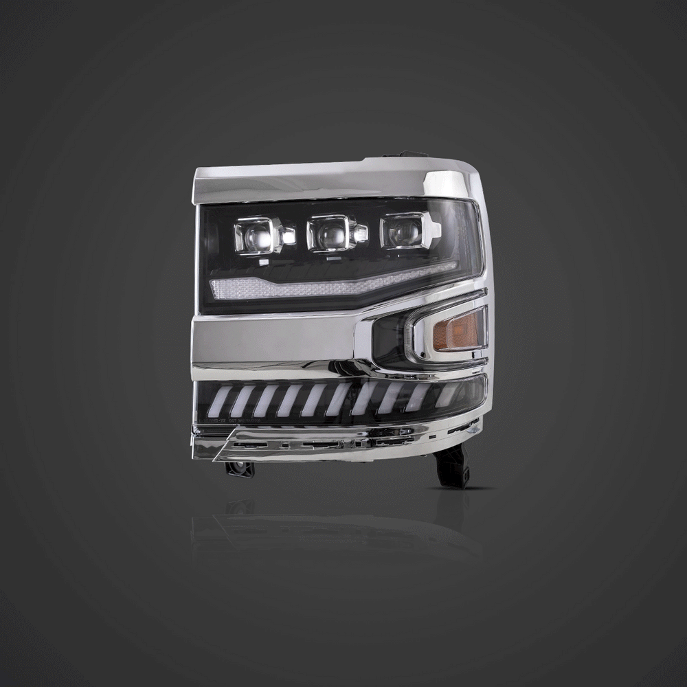 LED Headlight Assembly Dual Beam Projector Black For 2016-2018 Chevrolet Silverado 1500 4th Gen Facelift - Amber Reflector is backordered and will ship as soon as it is back in stock.