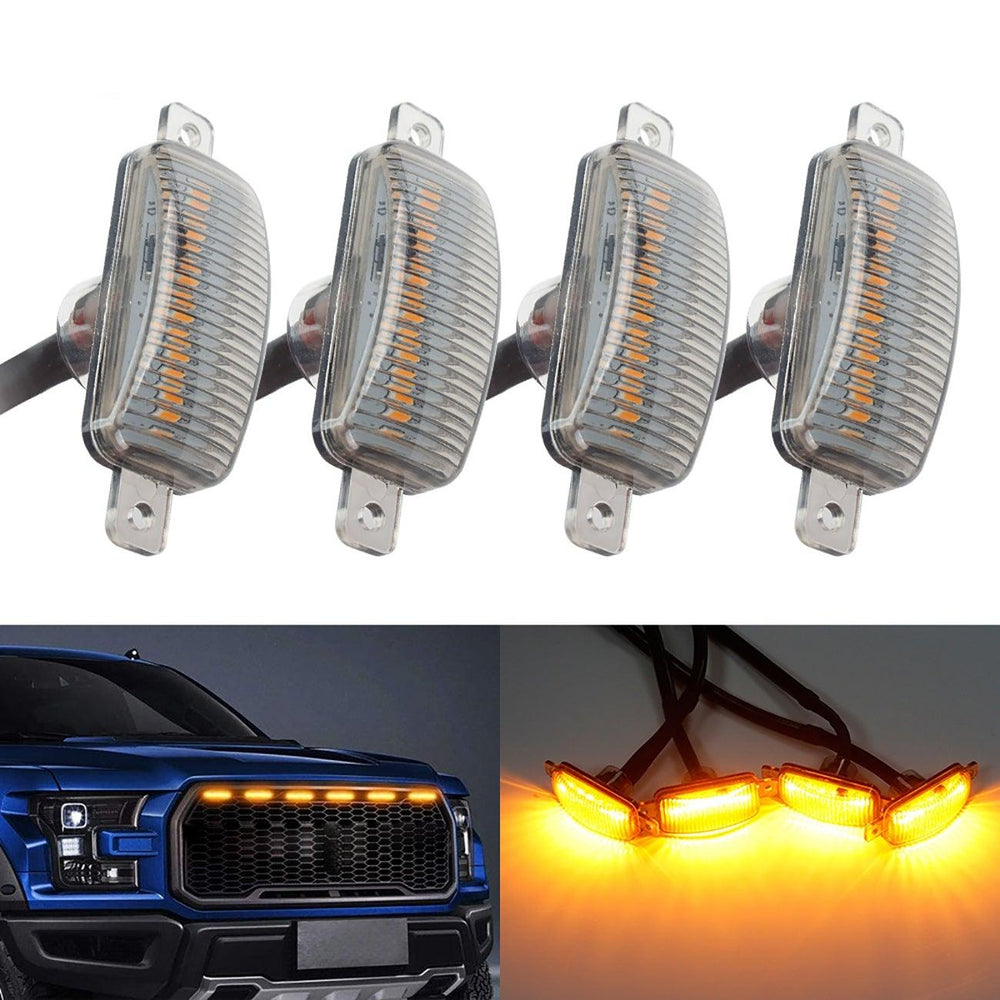 (4pcs/set) LED Front Hood Grille Lights Raptor Style Amber Light Fit for Pickup Truck Off-Road SUV (Amber Shell/ Smoked Shell)