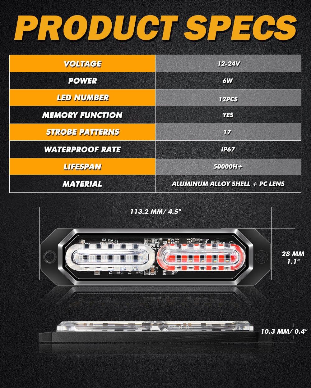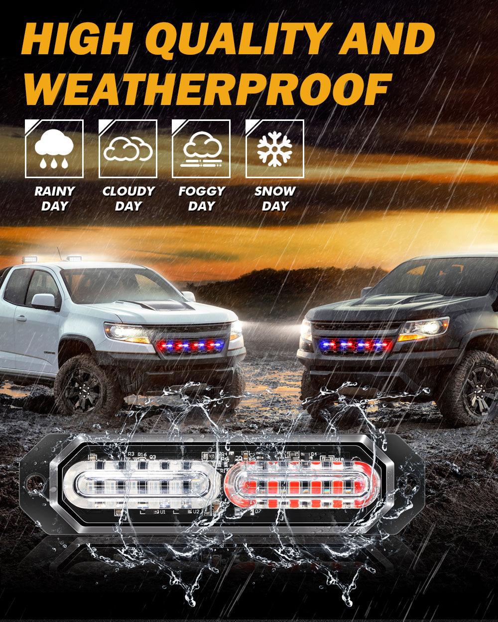 【Super Visibility】: AUXBEAM 4Pcs 12LED Surface Mount Strobe Lights, each light has a total of 12 high-intensity Led chips. Use aluminum alloy housing + PC lens to provide maximum coverage and offer High Visibility day or night. Excellent brightness to improve better safety and security