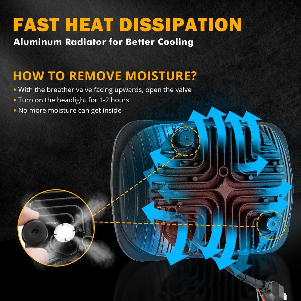 PREMIUM MATERIALS: Auxbeam 7x6 headlights are made with high-transparency PMMA lenses that refract light better and are resistant to shattering and scratching. Unlike cheap plastic shells, our robust aluminum shell provides superior heat dissipation to maintain an optimal working temperature. Moreover, Auxbeam 7x6 LED headlights are DOT and SAE certified, making your driving safer.