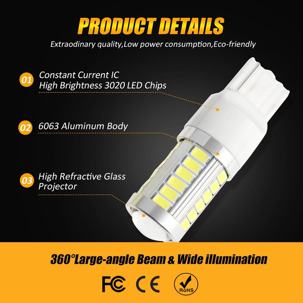 7440 7440A LED Backup Reverse/Turn Signal/Brake Tail Light Bulbs 20W 4000LM 6500K White 33LED Series | 2 Bulbs