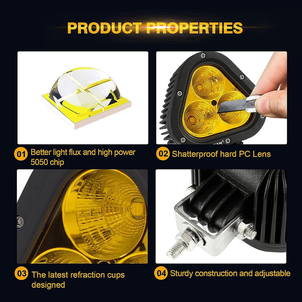 Super Bright Triangle Light Pod: 4 Inch triangle led pod to take latest refraction cups, provides flood beam inside and spot beam outside create a 40° light beam. The best Spot flood combo beam for maximum forward distance and improved peripheral illumination along road edges
