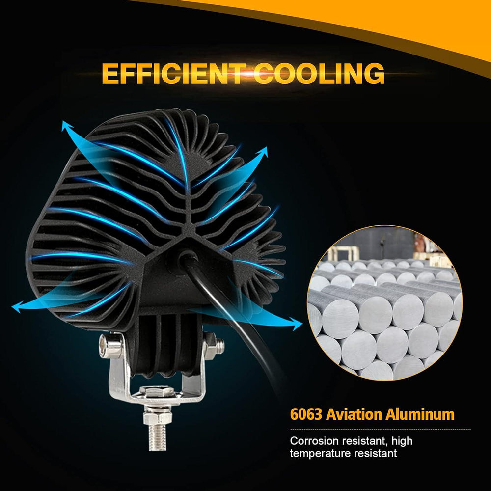 High Intensity 5050 Chip: Compared with ordinary 3535 chip, Auxbeam off road LED light have 90W/Pair 5050 LED chips, 9000lm/Pair and 3000k amber light. Outstanding performance will light up everything you need to see!
